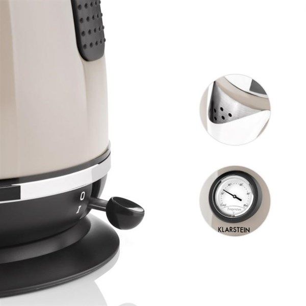 Ấm siêu tốc Klarstein 1,7 lít chính hãng thiết kế kiểu dáng giống như một chiếc ấm uống trà cổ điển với gam màu sang trọng sẽ góp phần tô điểm thêm cho không gian căn bếp nhà bạn.