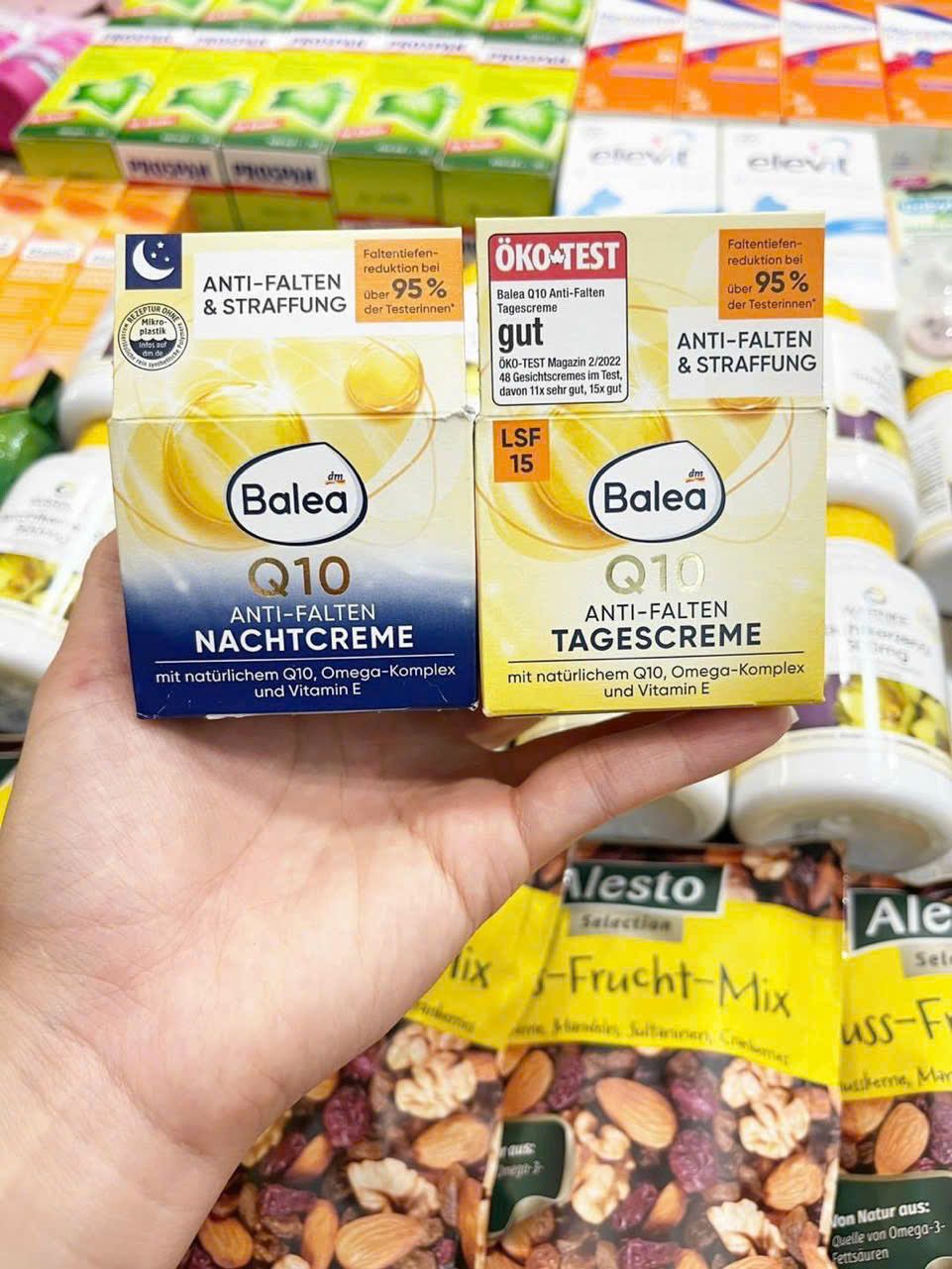 Bộ đôi kem dưỡng Balea Q10 Anti-Falten Tagescreme & Nachtcreme là giải pháp chăm sóc da toàn diện đến từ Đức, giúp giảm nếp nhăn, cải thiện độ đàn hồi và nuôi dưỡng làn da mịn màng, rạng rỡ cả ngày lẫn đêm.