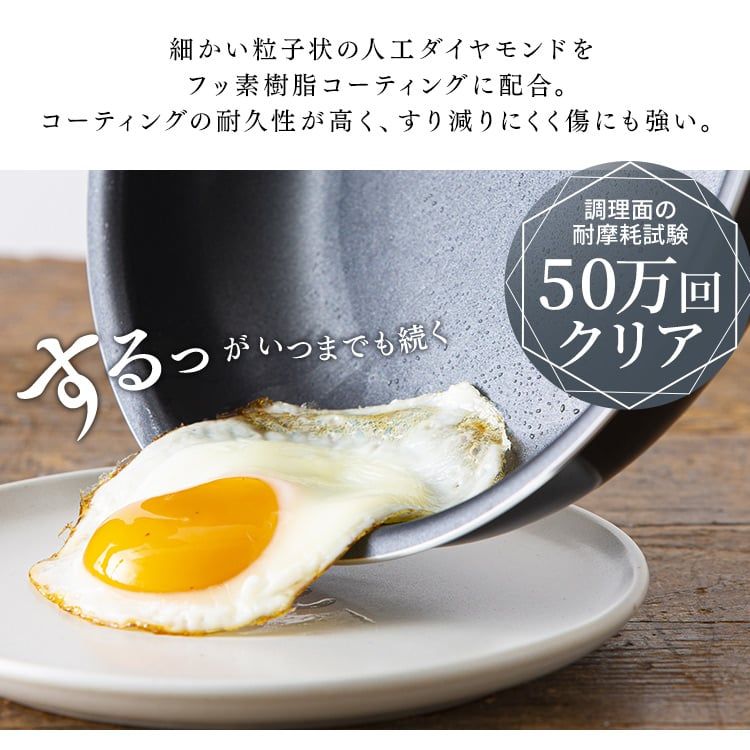 Đây là một bộ nồi và và chảo sử dụng lớp phủ kim cương. Lớp phủ kim cương là hỗn hợp của kim cương nhân tạo ở dạng hạt mịn và lớp phủ fluororesin.