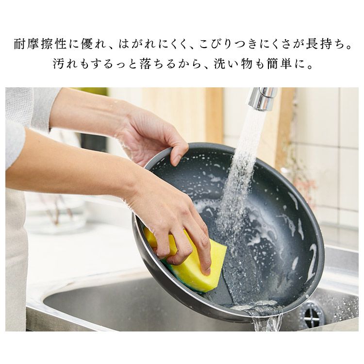 Chảo gốm chống dính 6 lớp. Cán rời, rất chắc chắn, thao tác dễ dàng, chỉ cần kẹp vào miệng nồi.
