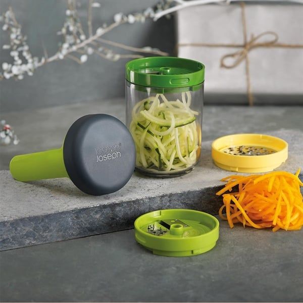 Dụng Cụ Nạo Sợi Joseph Joseph 20105 giúp thực hiện các công việc bào sợi, xoắn ốc nhỏ nhanh chóng và dễ dàng với thiết kế gọn gàng, nhỏ gọn. Hoàn hảo cho các loại rau củ cần bào sợi như khoai tây, cà rốt và dưa chuột. Máy có tay cầm dài giúp cầm nắm tốt hơn nhiều so với các loại máy xay cầm tay khác và lưỡi dao bằng thép không gỉ mang đến độ dày sợi mì hoàn hảo.