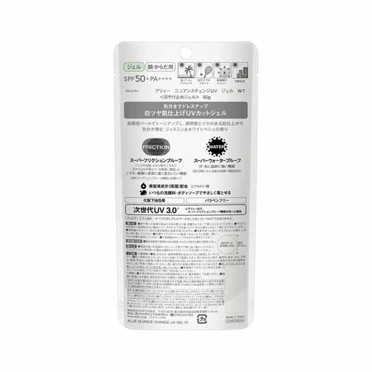 - Gel chống nắng Kanebo Allie SPF50+ PA++++ ngoài tác dụng chính là chống nắng hiệu quả, kem chống nắng Kanebo Allie còn là sản phẩm dưỡng da ban ngày giúp ngăn ngừa sự hình thành các đốm nâu, vết nám do tác nhân bên ngoài, làm da sáng mịn màng sau thời gian sử dụng. Chứa Hyalurolic Acid và chiết xuất tảo biển giữ ẩm cho da, thoáng da.