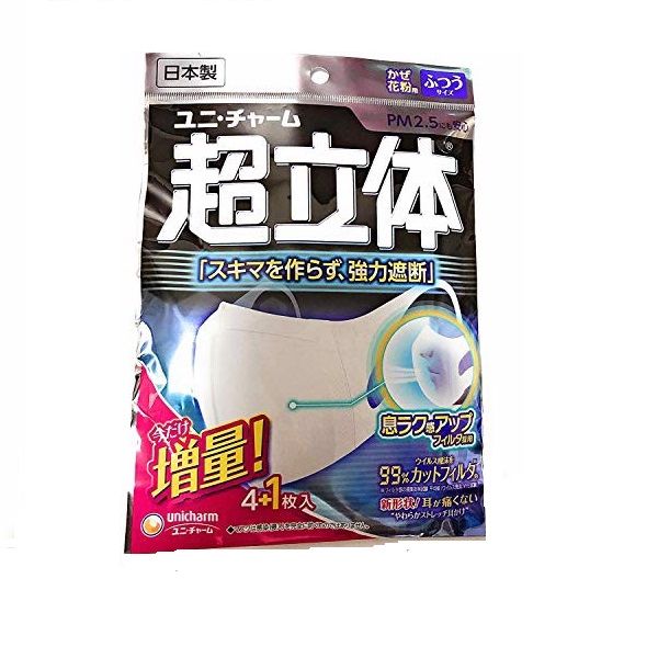 - Khẩu trang 3 D Unicharm Regular size vòng tai mềm mại và co giãn phù hợp với khuôn mặt của bạn mà không có bất kỳ đau đớn trong một thời gian dài.