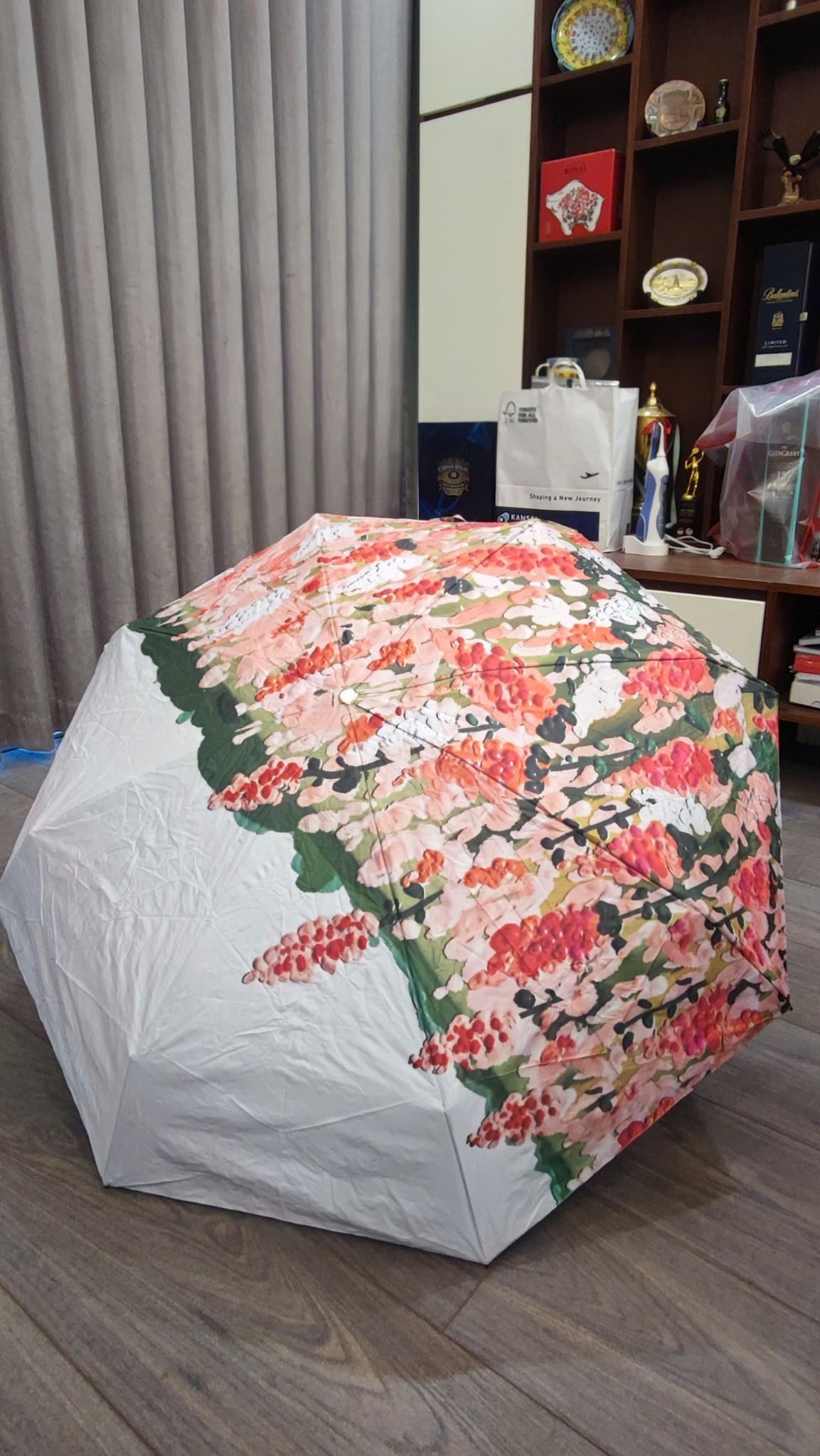 Lấy cảm hứng từ mỹ học Nhật Bản, mẫu ô sở hữu hoa văn nghệ thuật in ấn cao cấp, phối màu hài hòa, nhẹ nhàng nhưng vẫn nổi bật. Thiết kế 2 mặt hoa khác nhau giúp chiếc ô không chỉ là vật dụng che nắng mưa mà còn là phụ kiện thời trang tinh tế.