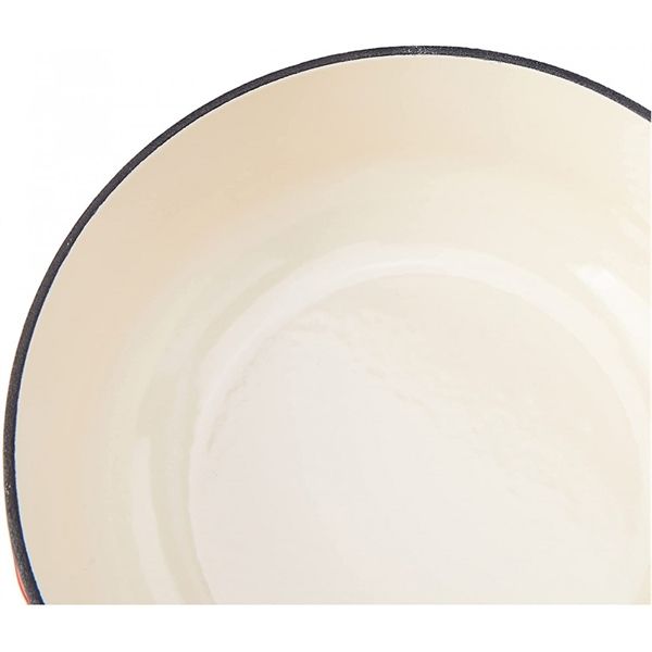 - Lòng nồi của quánh gang LeCreuset 18cm gang tráng men đảm bảo phân phối nhiệt đều và tránh thực phẩm bị cháy.