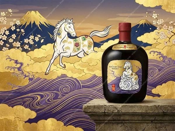 Suntory Old Whisky – Phiên bản Tết Bính Ngọ là dòng rượu whisky Nhật Bản cao cấp được Suntory phát hành giới hạn nhân dịp Tết. Thiết kế nổi bật với hình ảnh tuấn mã phi nước đại – biểu tượng của thành công, tốc độ, tài lộc và thăng tiến, mang ý nghĩa phong thủy sâu sắc: Mã đáo thành công – Vạn sự hanh thông.