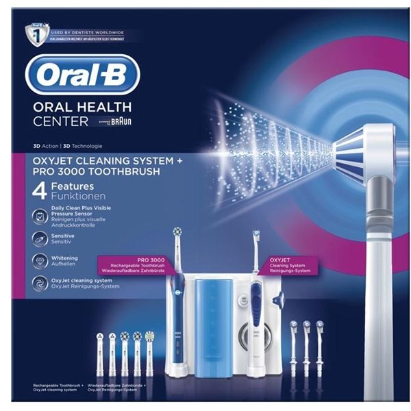 Tăm nước Oral B Oxyjet Hydropulseur chính hãng Oral B của Đức với thiết bị phun ra tia nước với lực đủ mạnh để làm sạch các vùng mà chỉ tơ nha khoa hay bàn chải ko thể tới được, nó còn giúp matxa nướu răng kích thích tăng tuần hoàn máu giúp nuôi dưỡng và tăng sức đề kháng cho lợi khoẻ mạnh