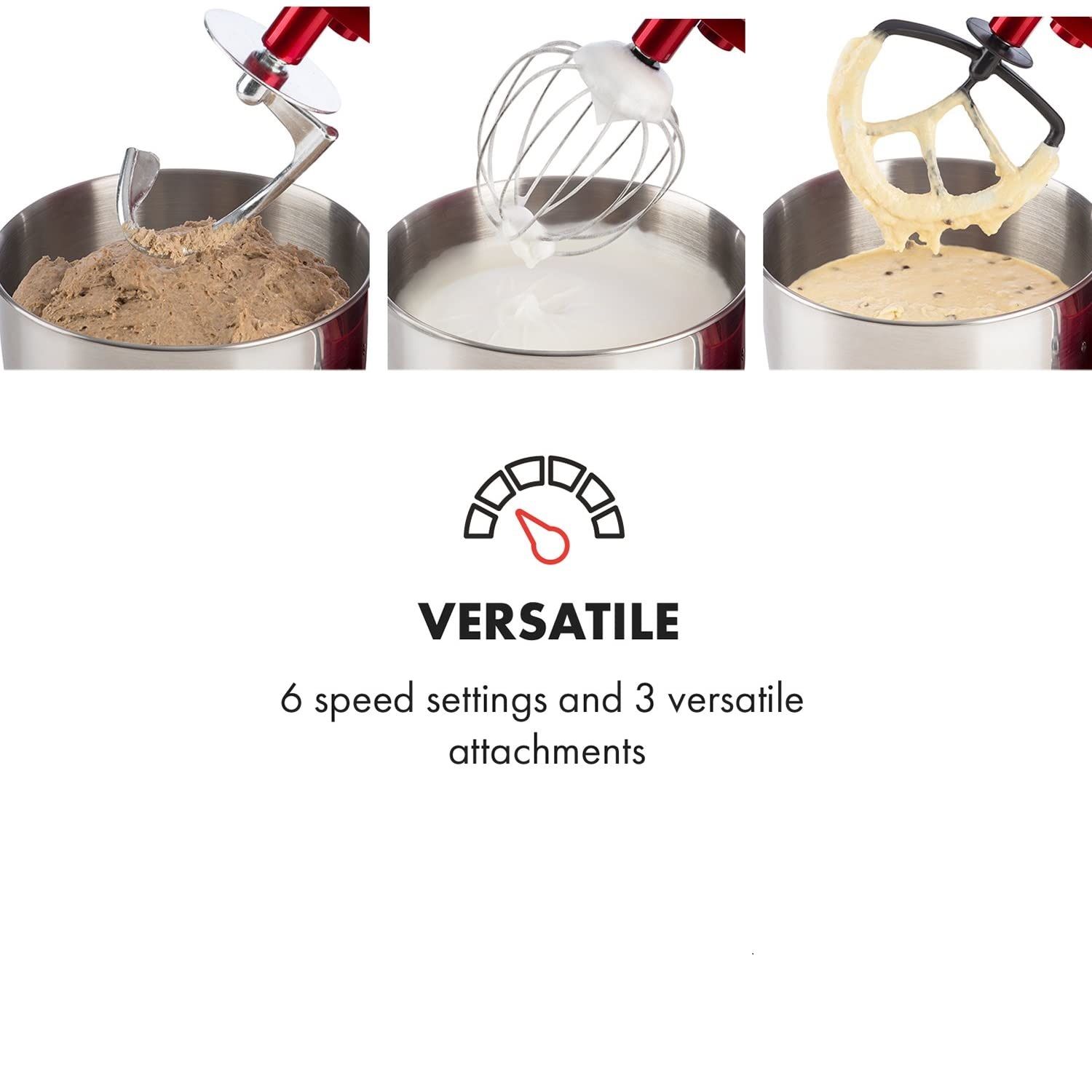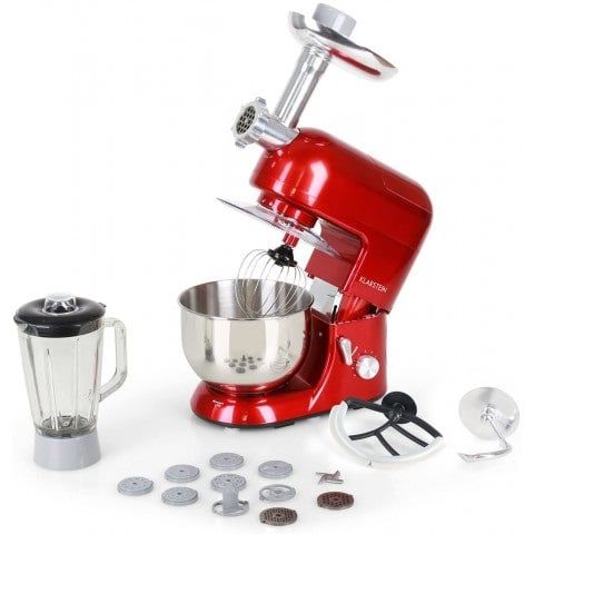 Máy trộn bột - máy nhồi bột Klarstein Lucia Rossa, được trang bị máy đánh trứng, máy nhào bột, máy xay thịt và bình xay, có thể xử lý mọi công việc trong nhà bếp.