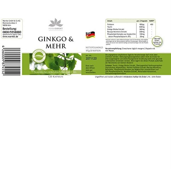 Viên uống GinkGo and Merh được chiết xuất từ cây Bạch Quả giúp bổ não, tăng cường máu lên não, cải thiện trí nhớ, duy trì tinh thần tỉnh táo, giảm triệu chứng tiền đình. Cây Bạch quả là loại cây được ngành dược phát hiện và chứng minh có công dụng giúp cải thiện trí nhớ, tăng cường và khôi phục những chức năng não bộ. KHÔNG CHỨA LACTOSE, KHÔNG CHỨA GLUTEN, 100% VEGI, KHÔNG CHỨA GELATIN, KHÔNG CHỨA MEN.